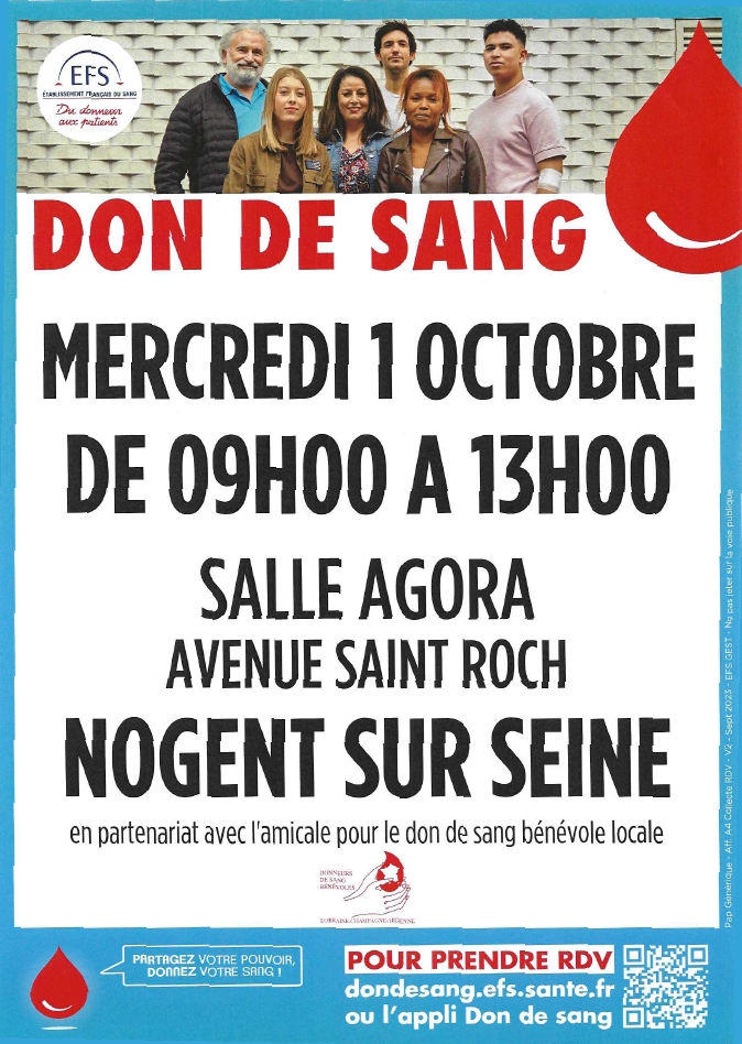 DON De SANG – Le mercredi 1er octobre 2025