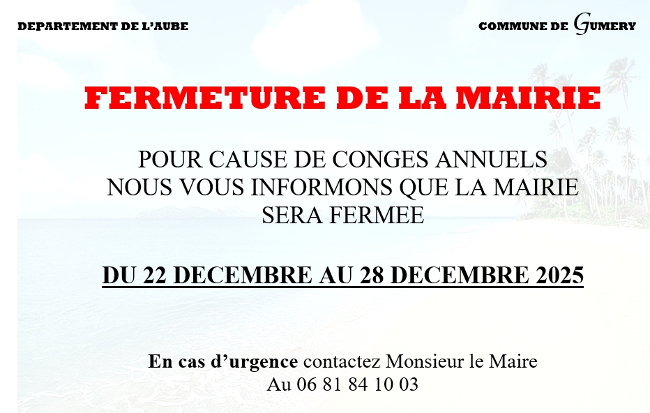 FERMETURE DE LA MAIRIE POUR CONGÉS ANNUELS