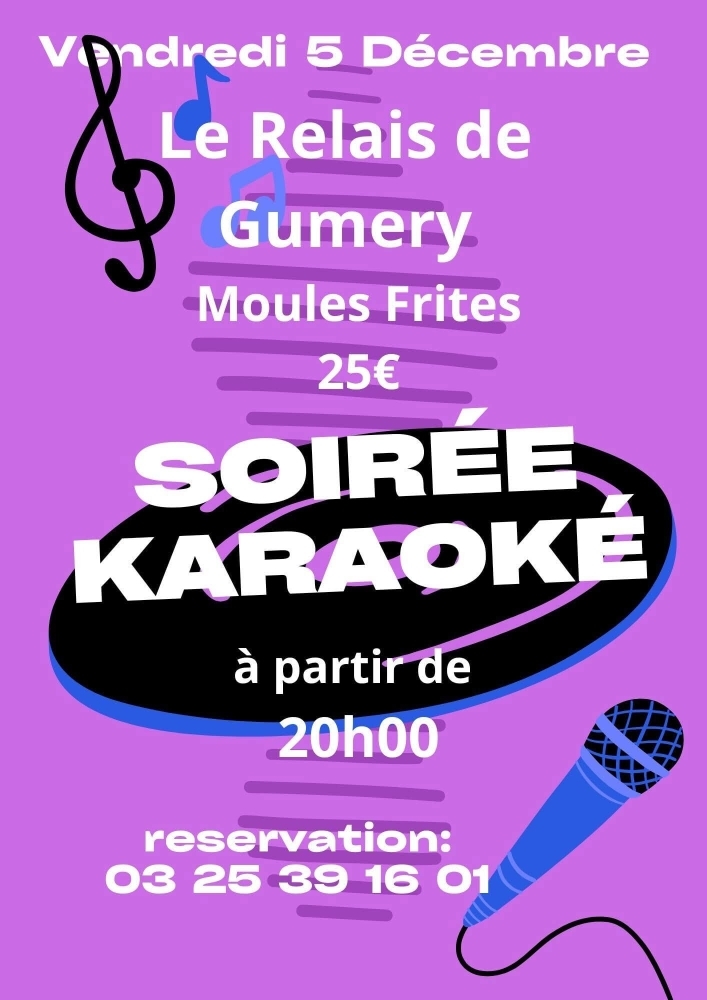 SOIRÉE KARAOKÉ – MOULES FRITES – VENDREDI 5 DÉCEMBRE